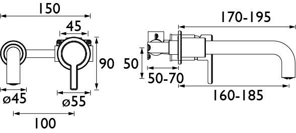 The Altum wall mounted 2TH basin mixer features a contemporary lever design with classic bevelling for a timeless twist. Finished in warm brushed brass, it includes a 5L flow regulator helps conserve water naturally without compromising performance.