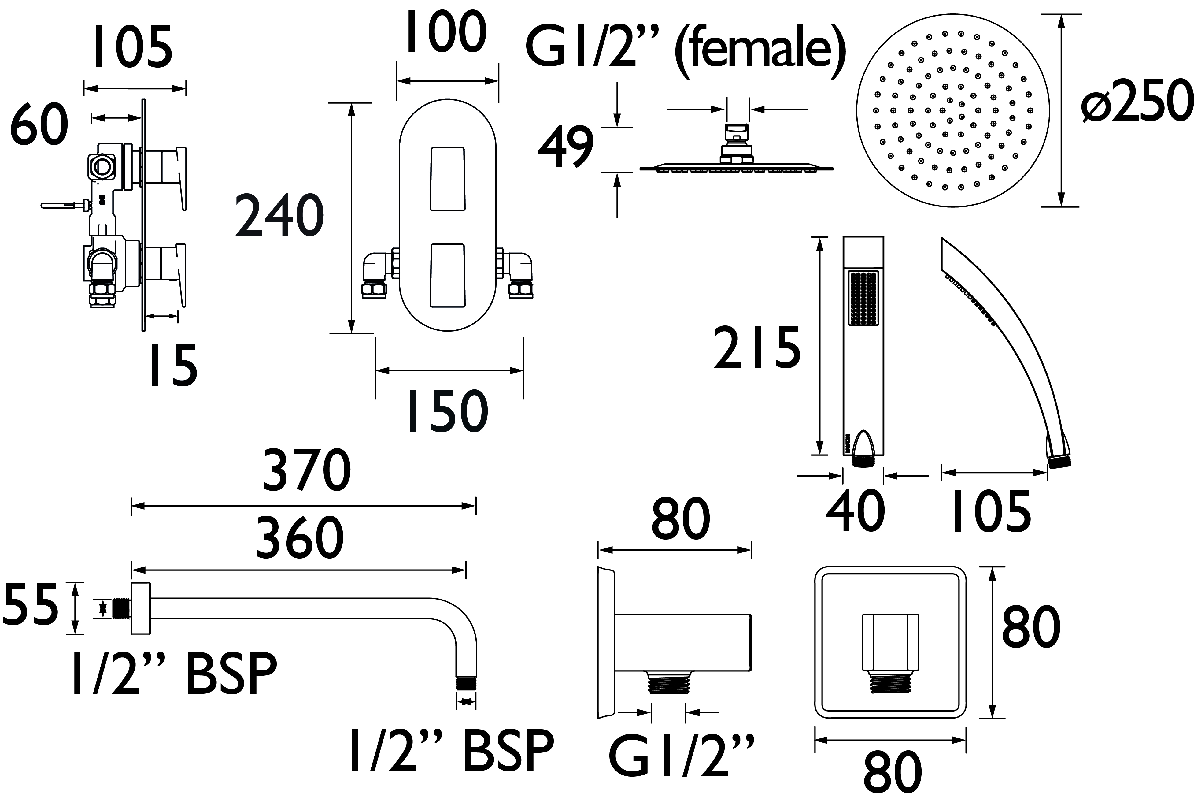 Designed with contemporary bold lines, the Frammento Thermostatic Shower Pack brings sleek dual control design in polished chrome to modern bathrooms. Featuring a two outlet diverter, allowing you to run water from either the supplied drench head or handset.