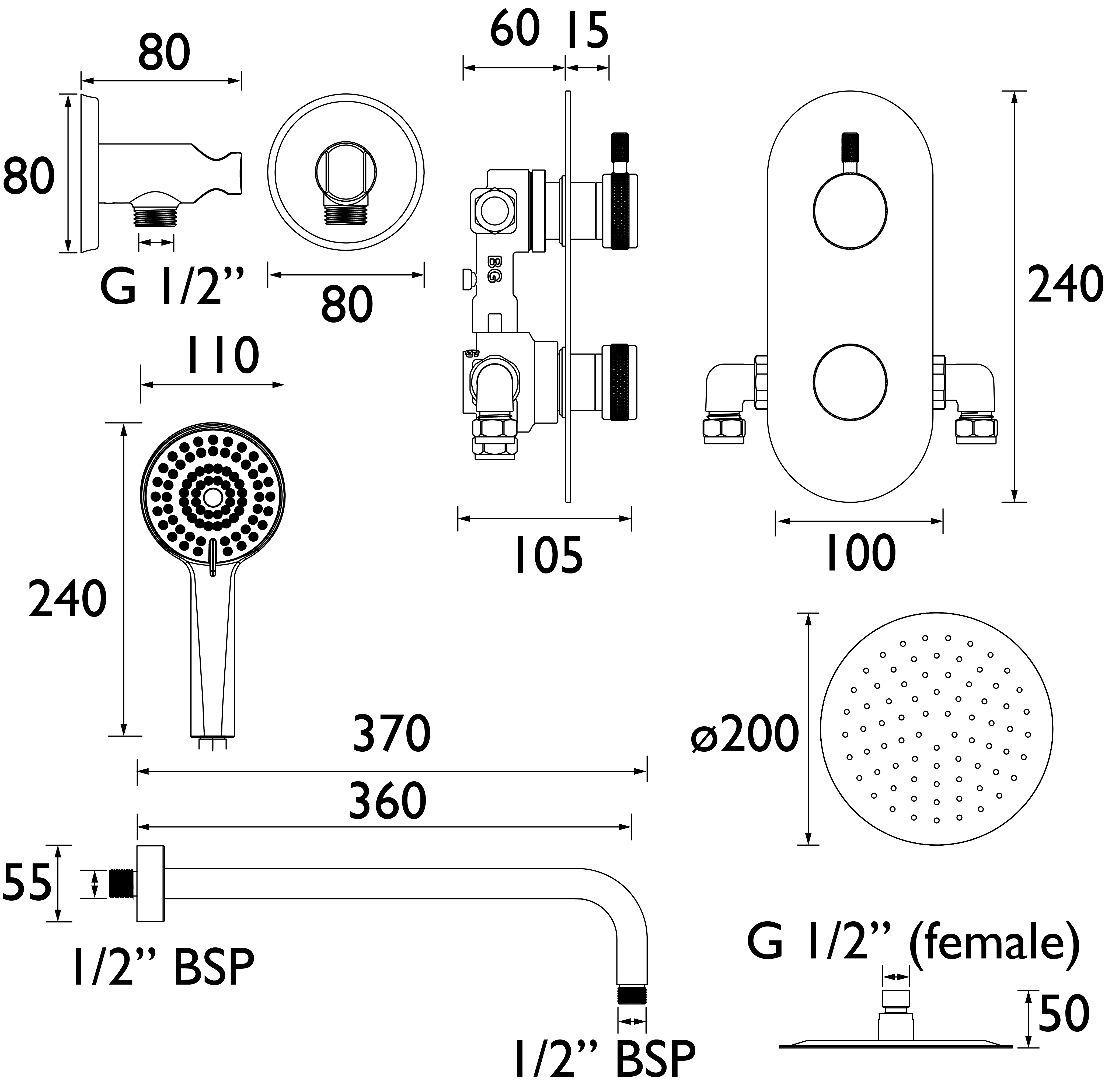 Part of the Molida range, this European-inspired shower package features a diamond knurling pattern on the handle, adding depth and elegance. Finished in warm brushed brass, it offers dual control functionality with contemporary appeal. A front-access cartridge design simplifies maintenance, while rub-clean nozzles keep your handset looking sharp.
