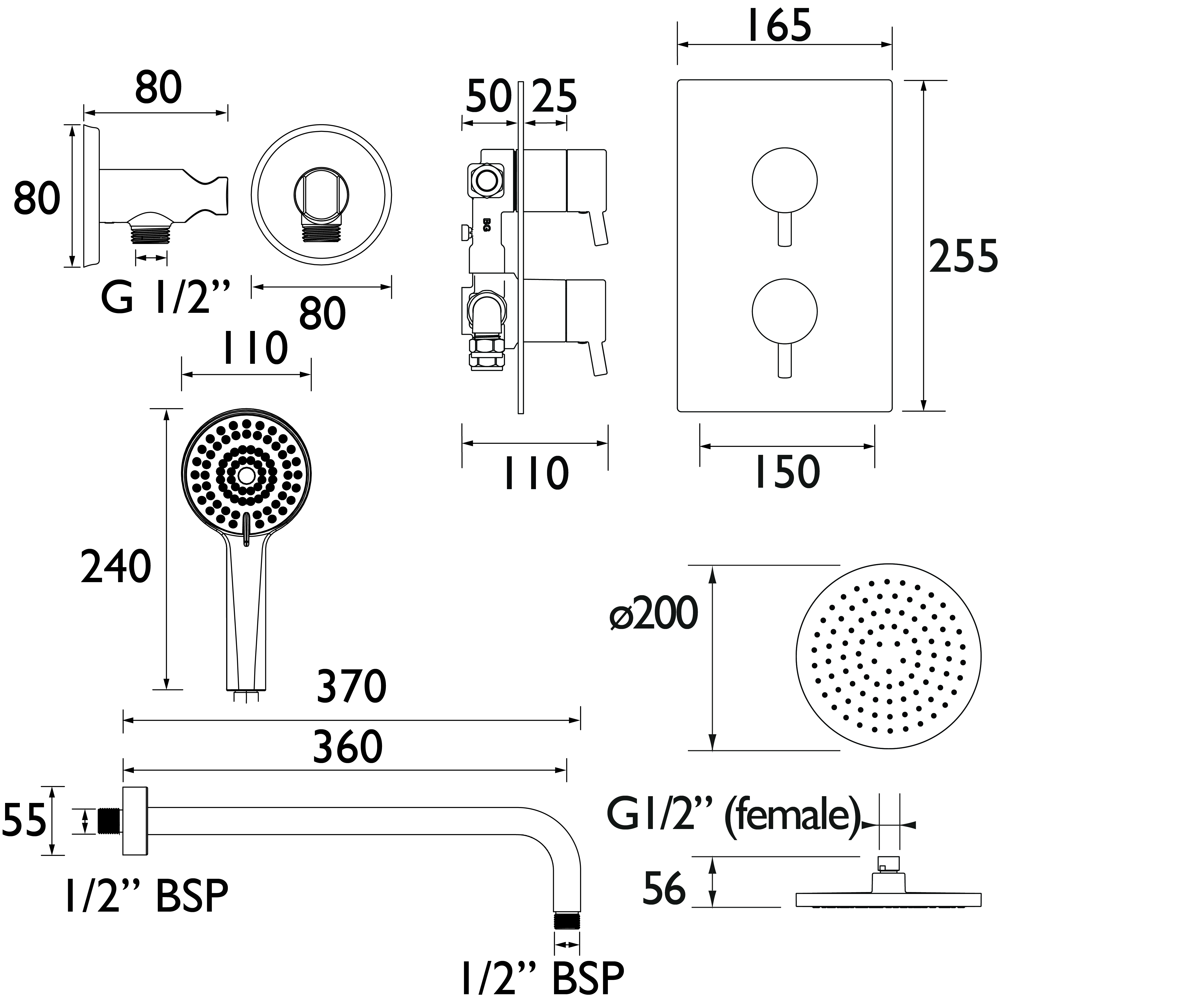 The versatile Prism thermostatic shower package in black delivers dual control functionality with a contemporary finish that complements modern bathrooms. Separate flow and temperature controls provide exact adjustment, while the 200mm drench head and handset offer complete showering flexibility.